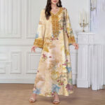 Embrace boho glamour in this stunning floral maxi dress featuring golden accents and a flattering V-neck design . This flowy long sleeve dress combines artistic floral prints , creating a perfect balance between casual comfort and sophisticated style. The loose fit silhouette drapes beautifully on all body types, making it ideal for women who love effortless yet eye-catching fashion.